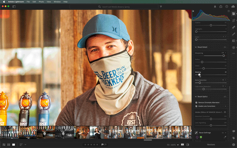 When sharpening, it’s important not to sharpen every pixel in the photo and only target contrasting edges. This is achieved by turning up the Masking. Notice how the eyes and hard features are more defined, and the softer background is largely untouched.