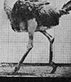 The legs are the most important element to the castle’s animation, so I started with those and worked my way up. The locomotion of the castle in the film is a weird bow-legged crab walk, but because the legs on Howl’s castle have a very bird-like appearance and positioning of joints, it seemed much more natural (and fun) to animate them with a digitigrade locomotion (Bing it 😉). With a little bit of searching, I found this classic photographic ostrich motion study from the OG master, Eadweard Muybridge.