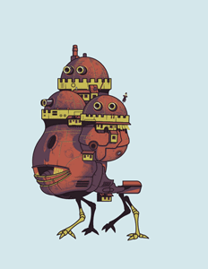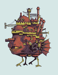Howl’s Moving Castle is a giant hulking mass of turrets, smoke stacks, and houses all bouncing along atop tiny chicken legs. In order to animate the pieces in After Effects, each castle section should be properly grouped into its own layer in Illustrator. This will allow AE to import the whole document and maintain the layers as easily articulated sections.