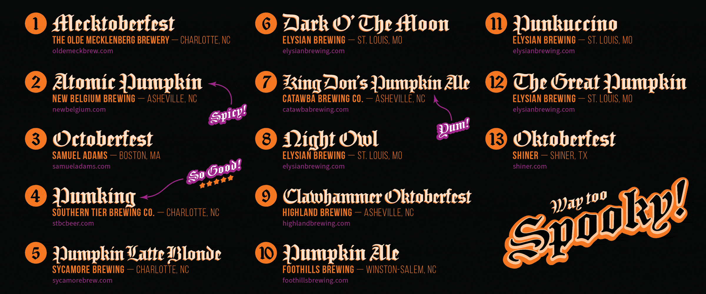 Here’s a typical doc that would benefit from having links — it’s my extra spooky list of 13 fall beers found in Charlotte area grocery stores. Because it’s a PDF, each of the 13 brewery URLs should link to their actual websites.