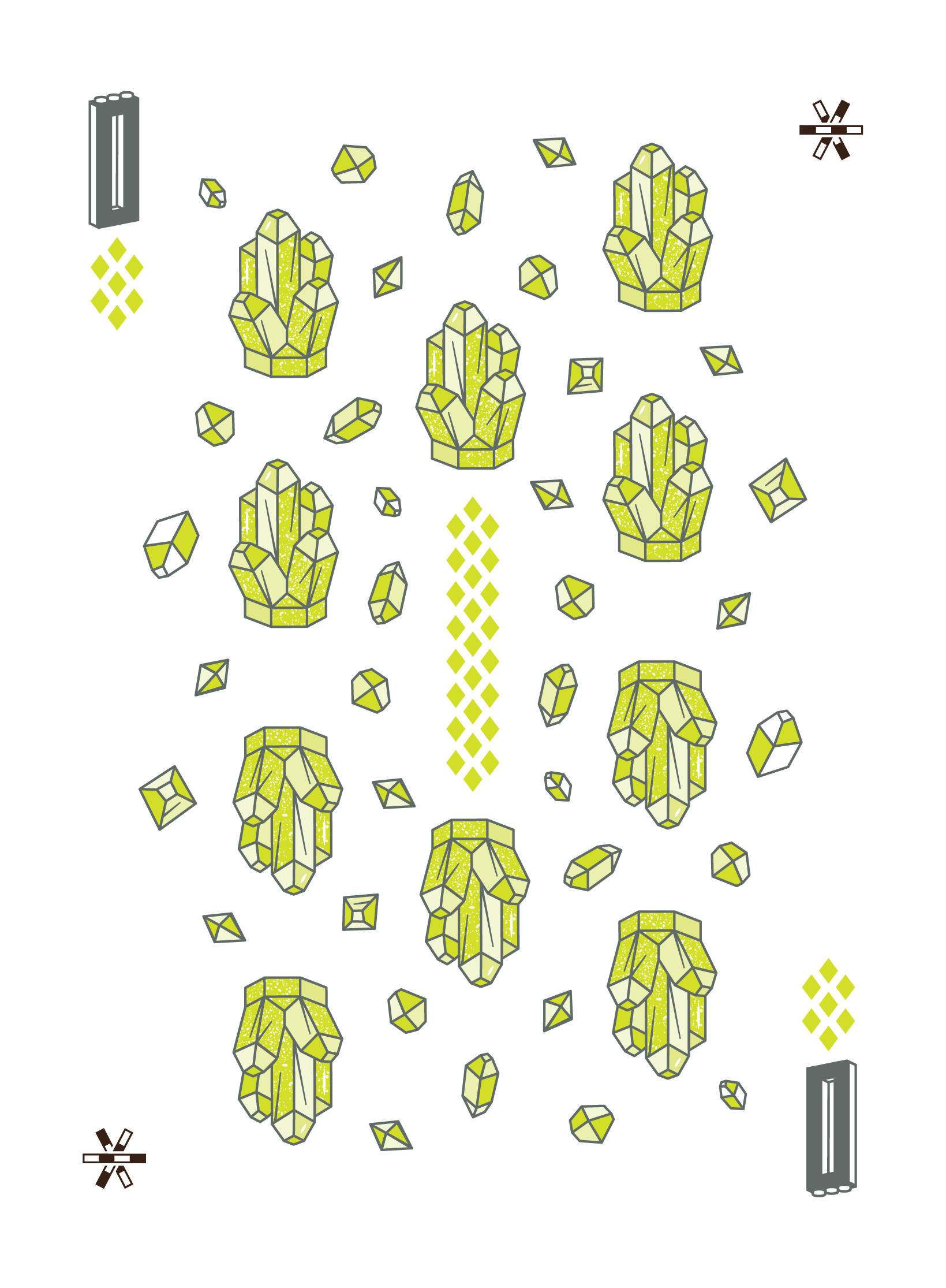 A LEGO-esque block font was created for the limited set of numbers and letters. All number cards have a portion of a blueprint which can be assembled into a large mosaic for each suit.